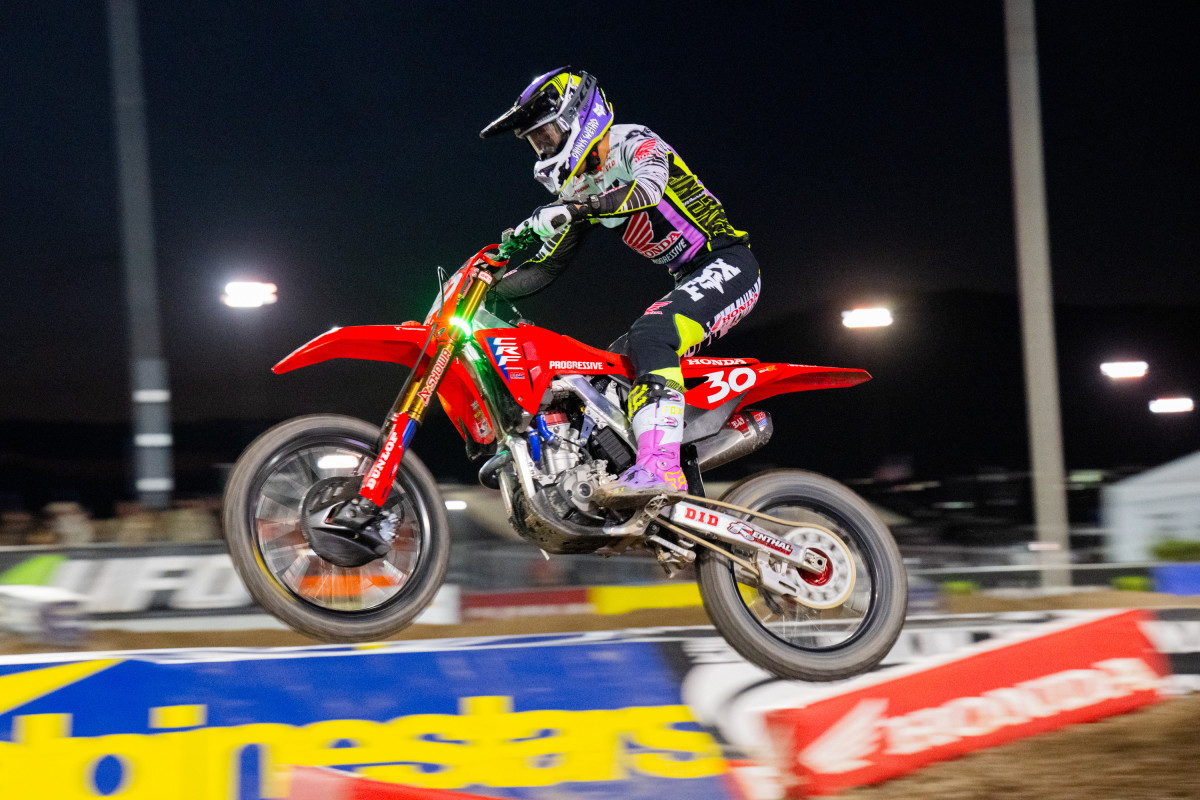 The SuperMotocross World Championship finale from Las Vegas marked the end of a 250 season dominated by a pair of riders. After a controversial collision in St. Louis, 250SX West and 250MX champion Haiden Deegan entered in an unfamiliar position as of late: without the red plate. Jo Shimoda left St. Louis with the top spot in points and carried a ten point lead into the finale. Monster Energy Pro Circuit Kawasaki's Seth Hammaker entered 14 behind, still in the fight as well. Hammaker took the first shot, setting the fastest qualifying time ahead of Shimoda. Deegan entered the night 12th, originally qualifying eighth but losing his fastest lap due to an off-track excursion.