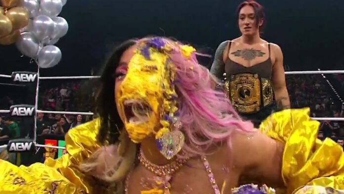 However, a hooded Kris Statlander appeared right after and took down Mone. She ruined her celebrations by planting her on the table, with her face going straight into the cake. The segment ended with a shot of Mercedes Mone’s face covered in yellow, leaving her humiliated and becoming nothing but a laughing stock on a night that was supposed to be significant for her.